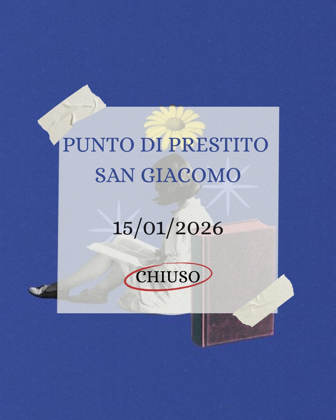 Avvisiamo i gentili lettori che il punto di prestito di San Giacomo rimarrà chiuso giovedì 15/01.