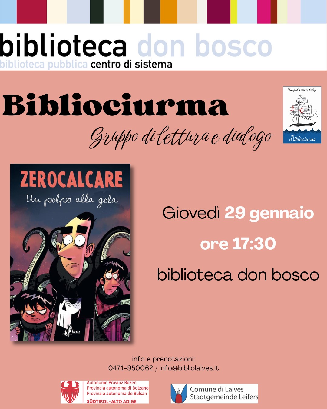Info e prenotazioni: 0471/950062; info@bibliolaives.it