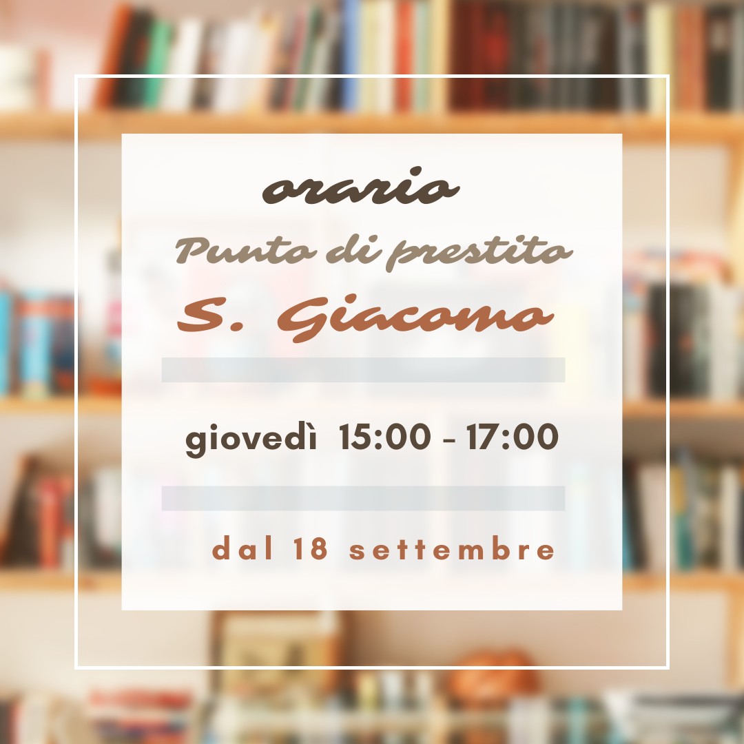 Da giovedì 18 settembre riprende l’orario tradizionale di apertura del punto di prestito di San Giacomo della biblioteca.