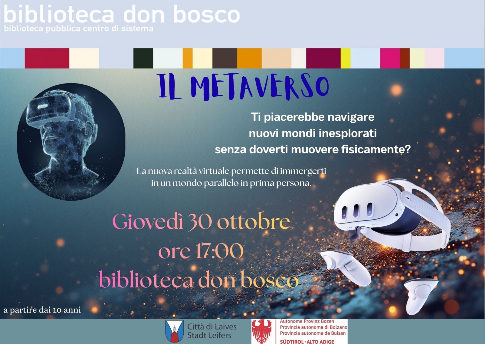 La biblioteca don bosco ti metterà a disposizione il visore per la realtà aumentata e due joypad per poterti muovere all'interno del metaverso.